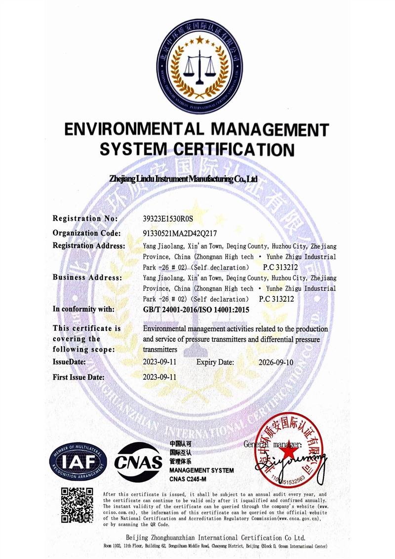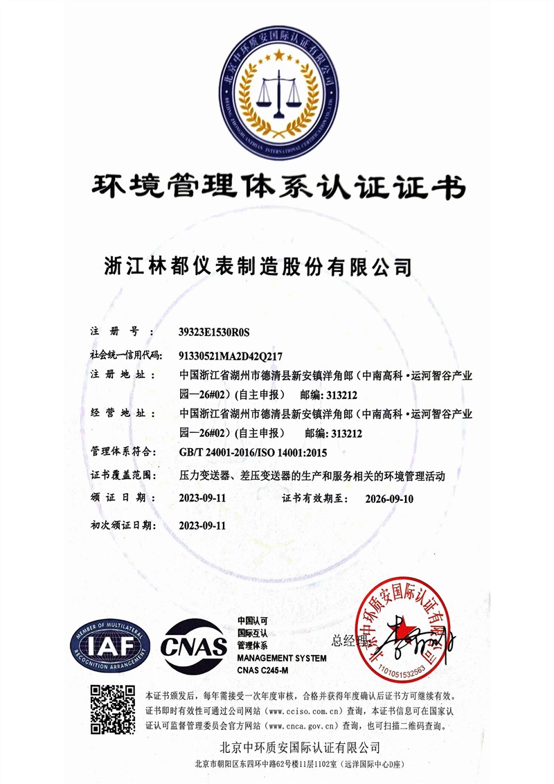 环境管理体系认证证书