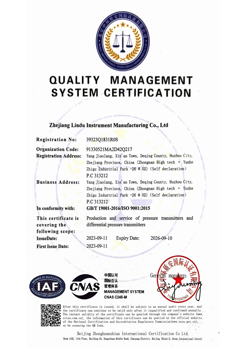 质量管理体系认证证书